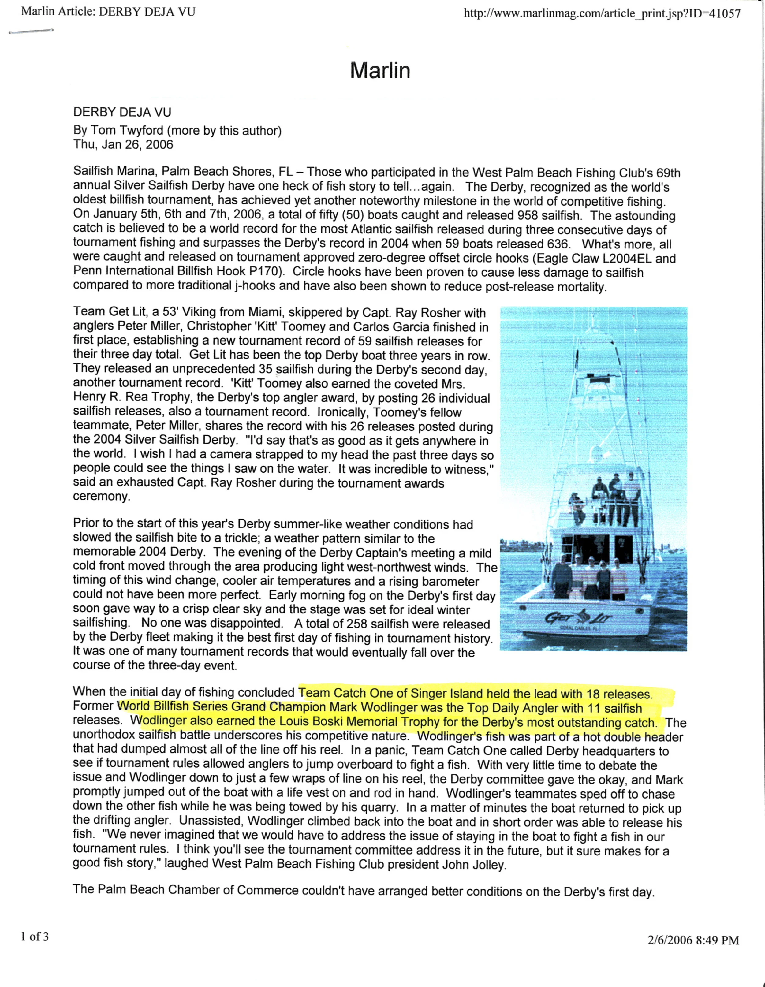 1st Place Palm Beach Inlet Ft. Lauderdale Billfish Tournament