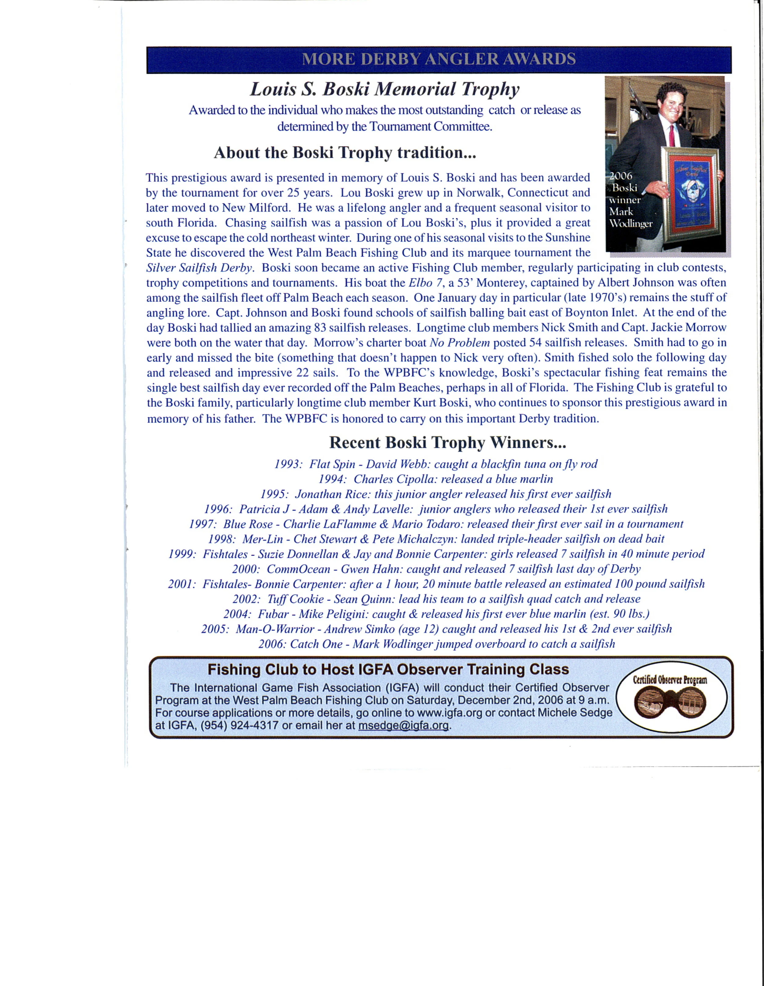 West Palm Beach Fishing Club Schnider Trophy Winner Most Sailfish Releases